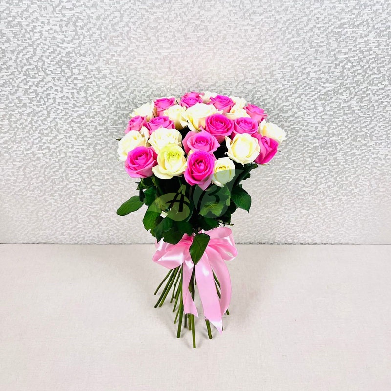 25 роз белого и розового цвета – лучший букет, достойный самой красивой невесты. Роскошь этих цветов можно дополнить сладким подарком или набором косметики и заказать доставку прямо в руки. Тогда его можно подарить не только на свадьбу, но и на 8 марта или любой другой праздник.