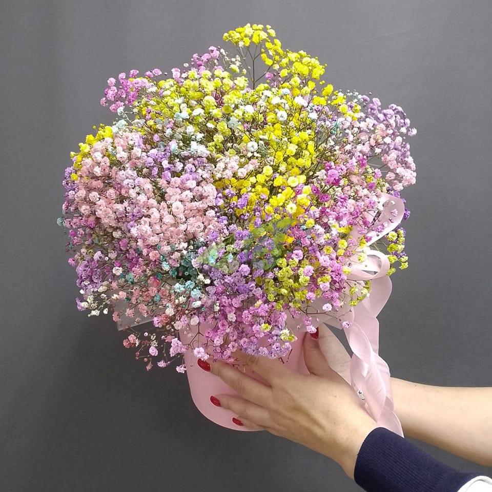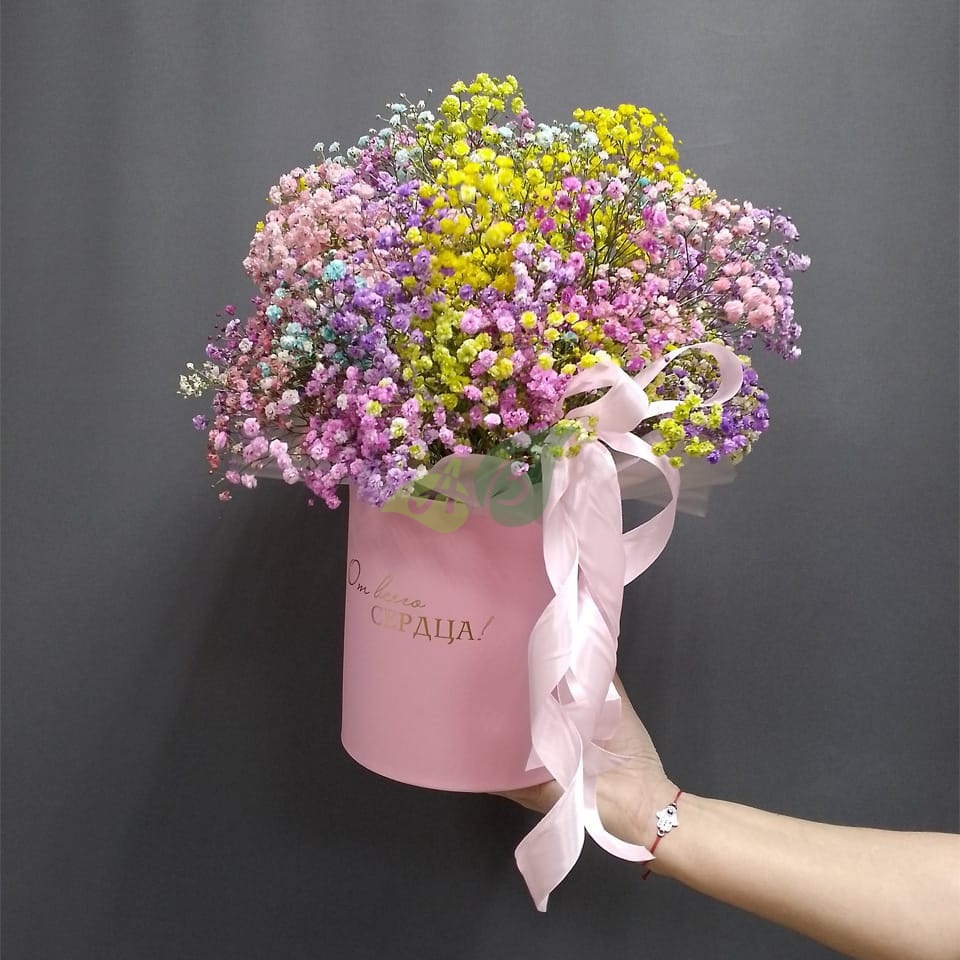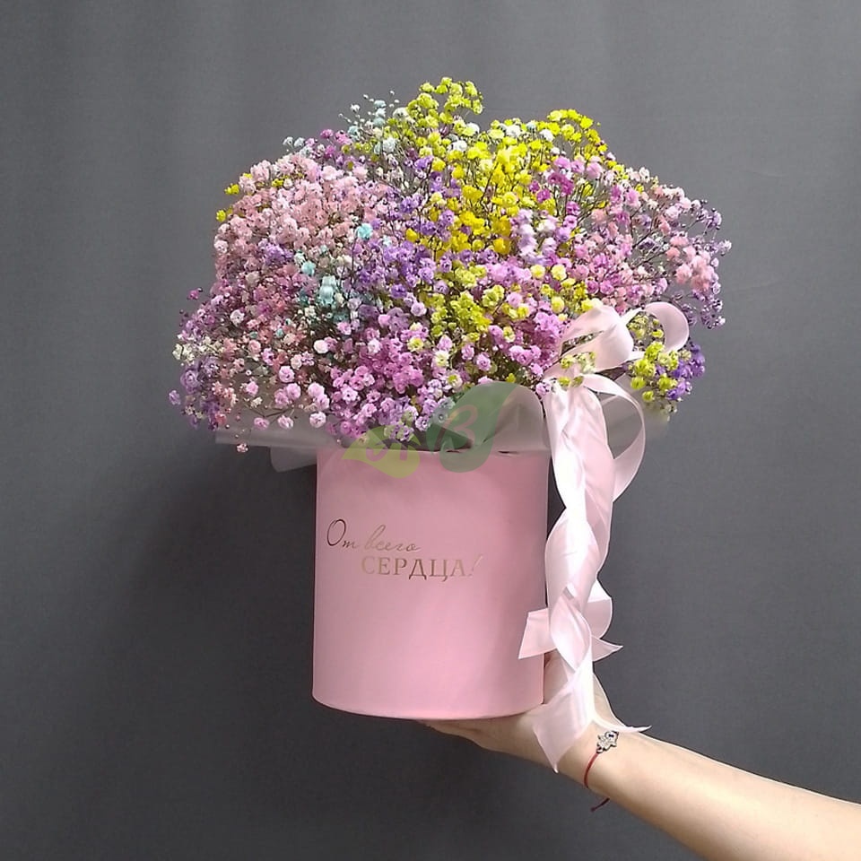 Состав и характеристики композиции в коробке "Радужна гипсофила":