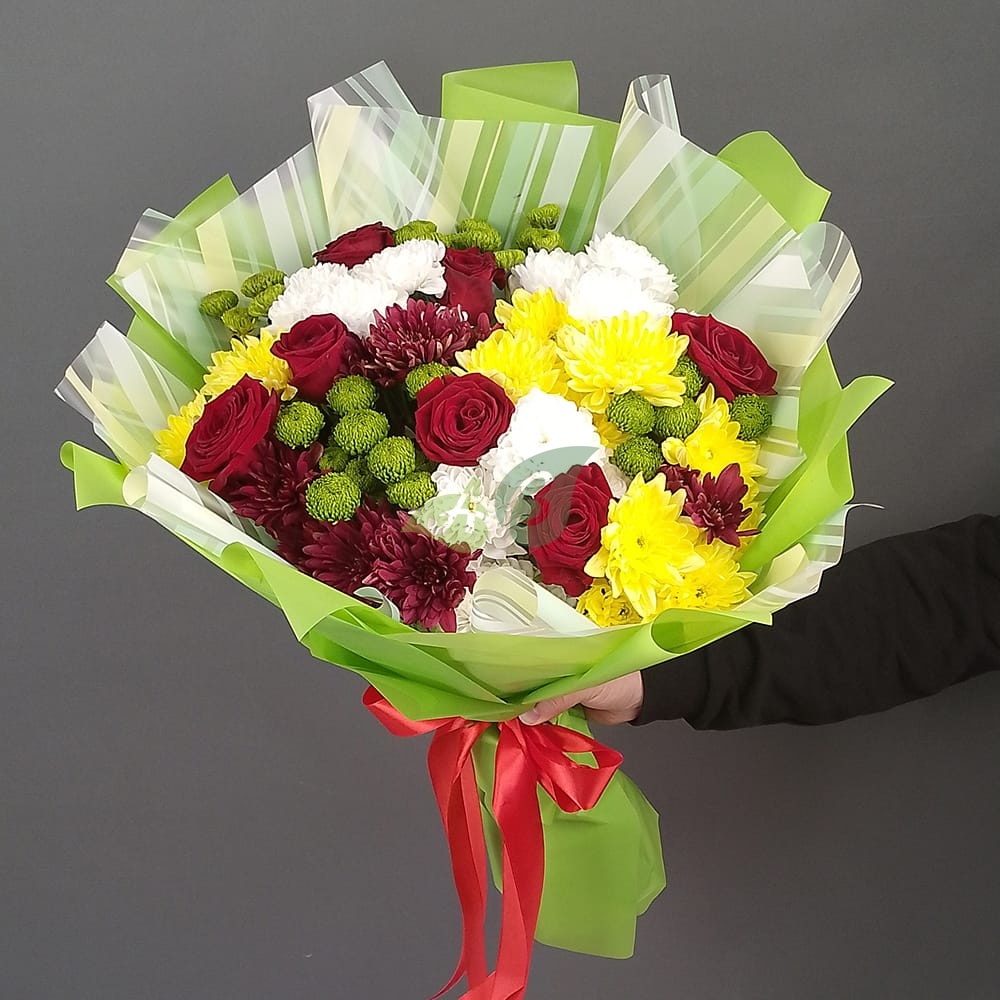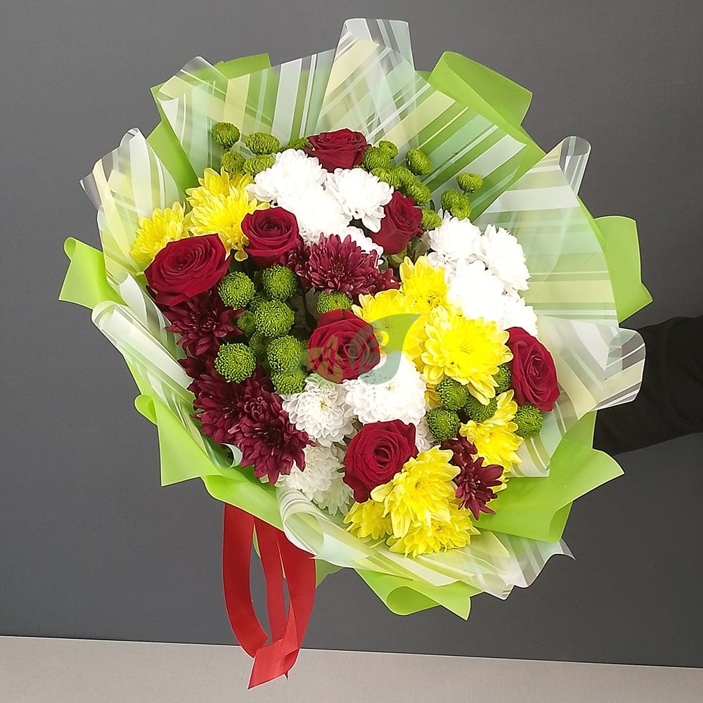 Хризантемы и розы в букете на заказ станут замечательным полноценным подарком. По вашему желанию мы вложим в цветы записку или открытку и обязательно сфотографируем получателя в момент доставки. Так вы не пропустите ни одно мгновение радости от букета из 7 роз и хризантем, который решили купить в нашем интернет-магазине.